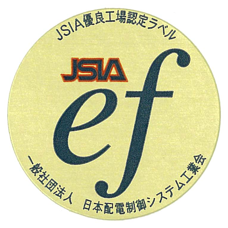 このefマ-クが貼付された製品は、品質保証システムが確立され、かつ製品の設計、製造、検査、および品質管理全般の技術力が一定の水準以上である優良工場で生産されたものであると証明されるので、配電盤メーカー選択の判断材料の一つとして活用して下さい。